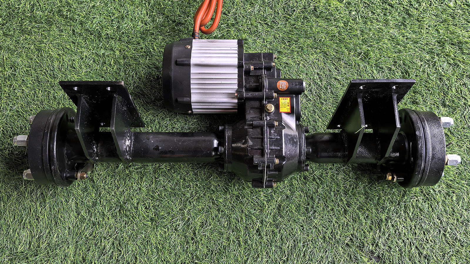 The axle is equipped with wheel hubs on both sides and includes a differential to ensure smooth power distribution during turns.